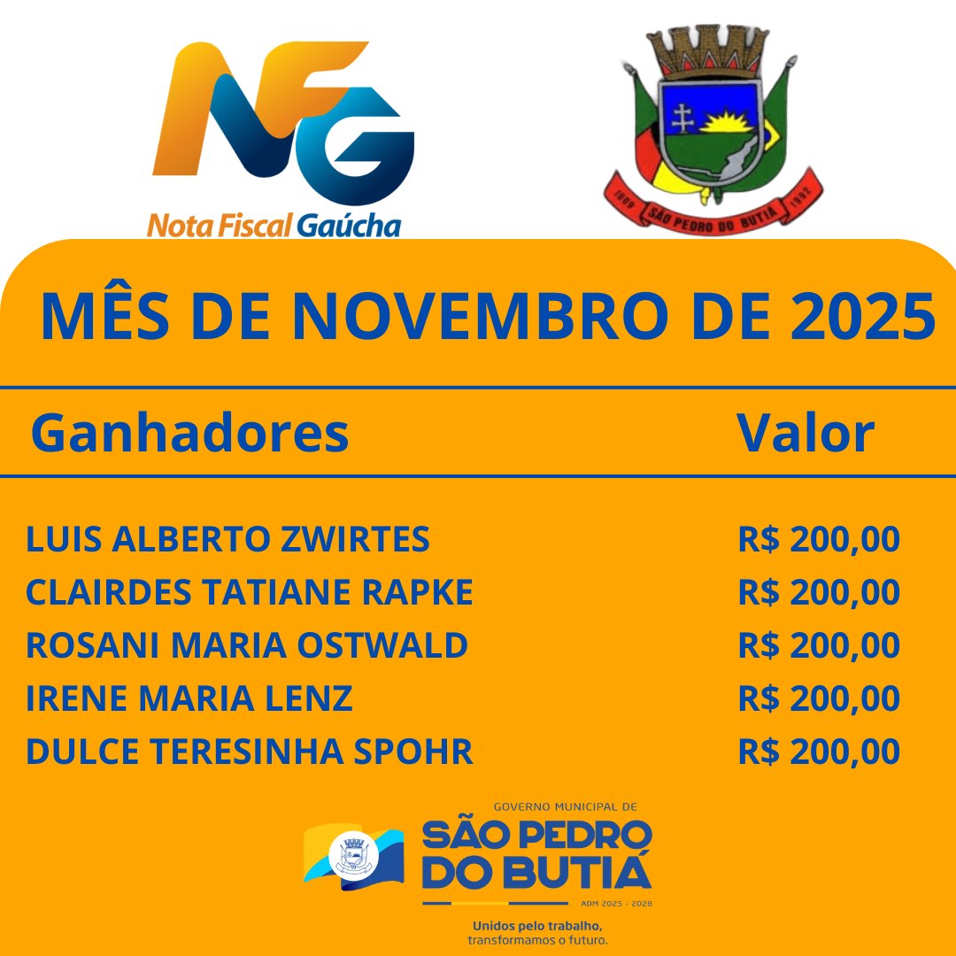 Ganhadores dos Vale Compras do Sorteio da Nota Fiscal Gaúcha do mês de Novembro